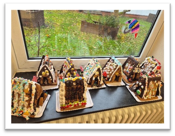 Für rund 45 Kinder sponserte die Firma Balzer aus Marne Knusperhäuschen zum selber gestalten. In jeweils 60 Minuten wurden die Lebkuchenplatten mit geschmolzener Schokolade zusammengebaut und mit vielen Leckereien verziert. Natürlich landete die ein oder andere Kleinigkeit auch direkt im Mund der Kinder.